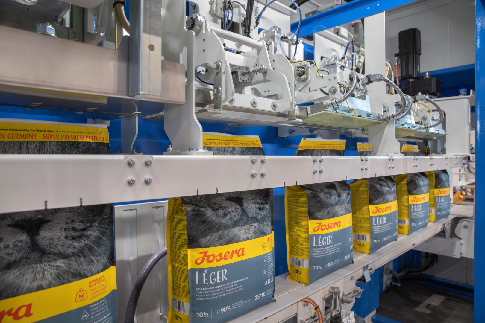 La Polyflex MAP est une ensacheuse qui a été spécifiquement conçue pour le conditionnement sous atmosphère modifiée. Le châssis et les entrainements sont adaptés à une machine longue, avec de nombreux postes. La construction Clean Bagging avec tenue du sac en pinces permet de gérer les réouvertures du sac pour le gazage et la désaération. Elle dispose d’un module monte et baisse et d’un pilotage vertical de la canne uniques et brevetés. Elle est, en standard, entièrement en servomoteur : chaque réglage est motorisé pour éliminer les déviations de réglages et ses courbes de températures de soudures sont pré-enregistrées en fonction des cadences, de la recette et du sac utilisé.